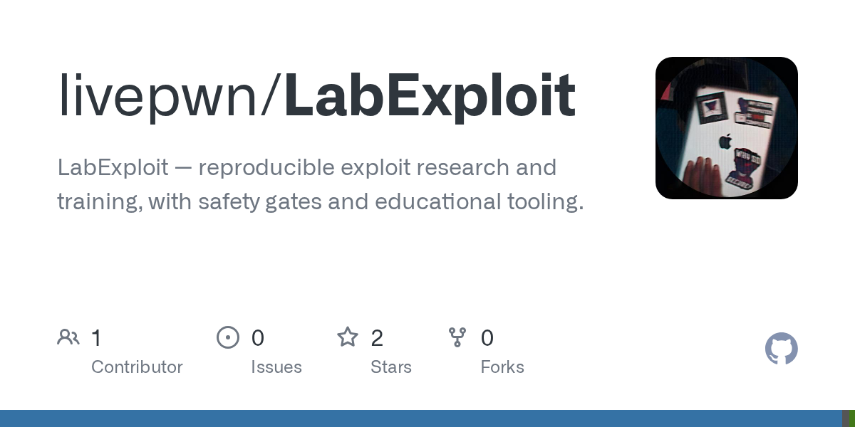 LabExploit — reproducible exploit research and training, with safety gates and educational tooling. - livepwn/LabExploit